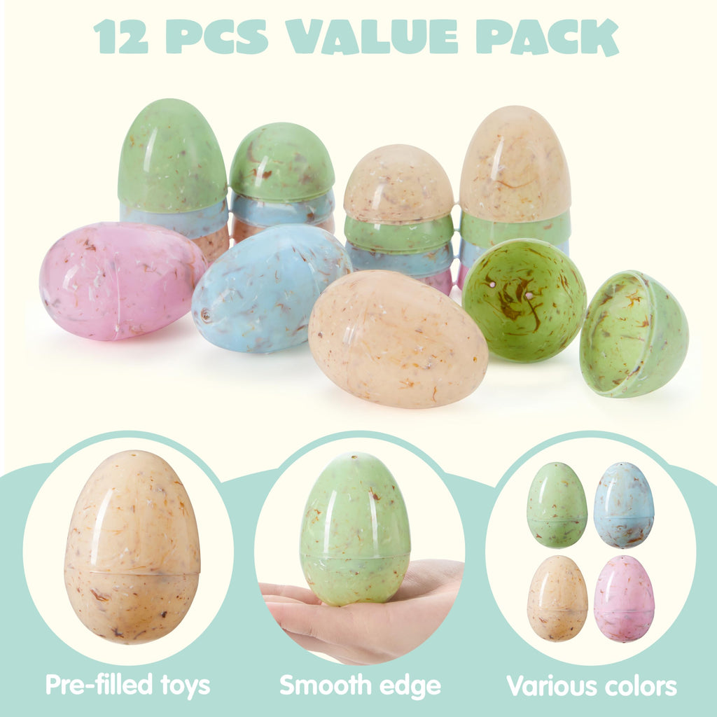 12 PCS Plastic Easter Marble Printed Fillable Empty Eggs