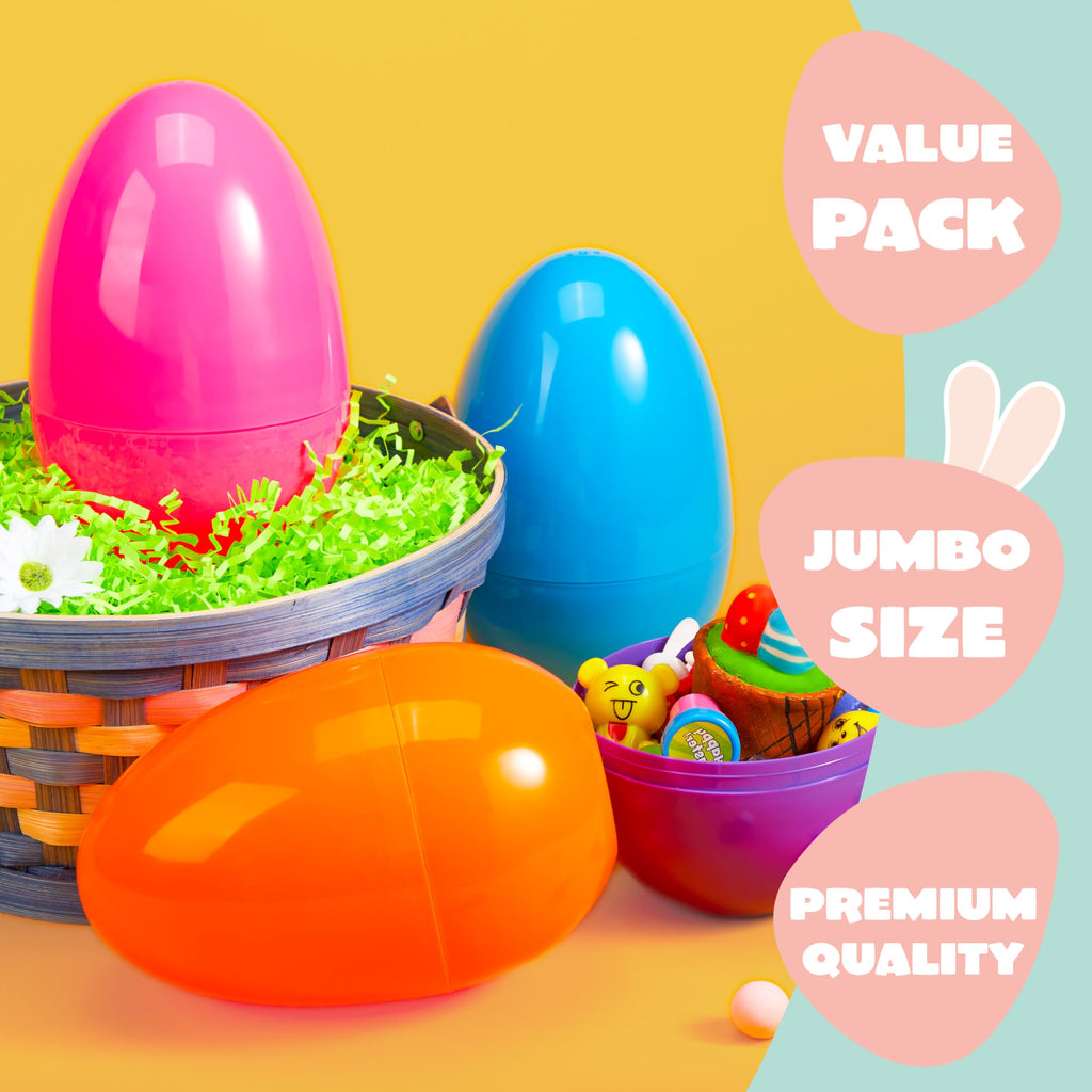 12Pcs Large Plastic Easter Eggs, 6 Inches Colorful Jumbo Eggs Fillable