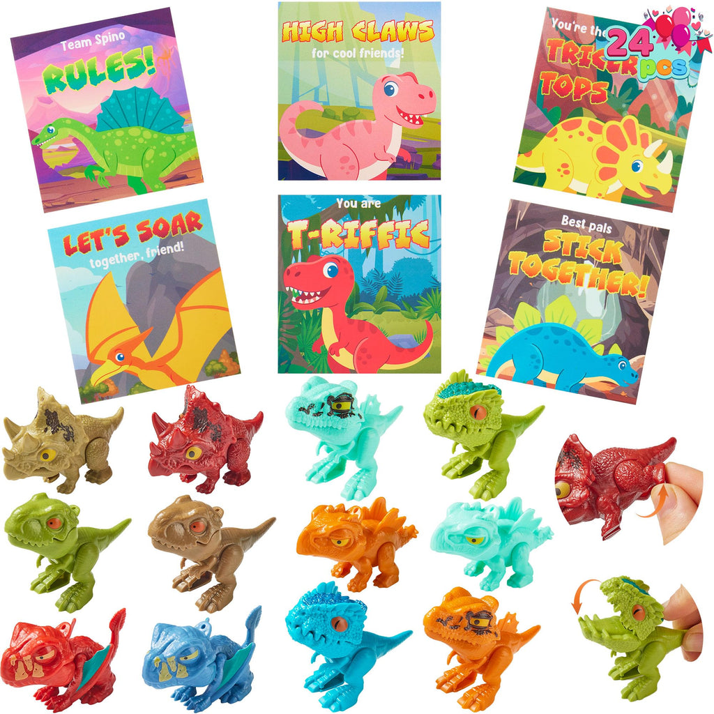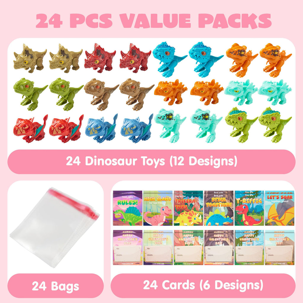 24 Pcs Valentine's Day Cards with Dinosaur Toys