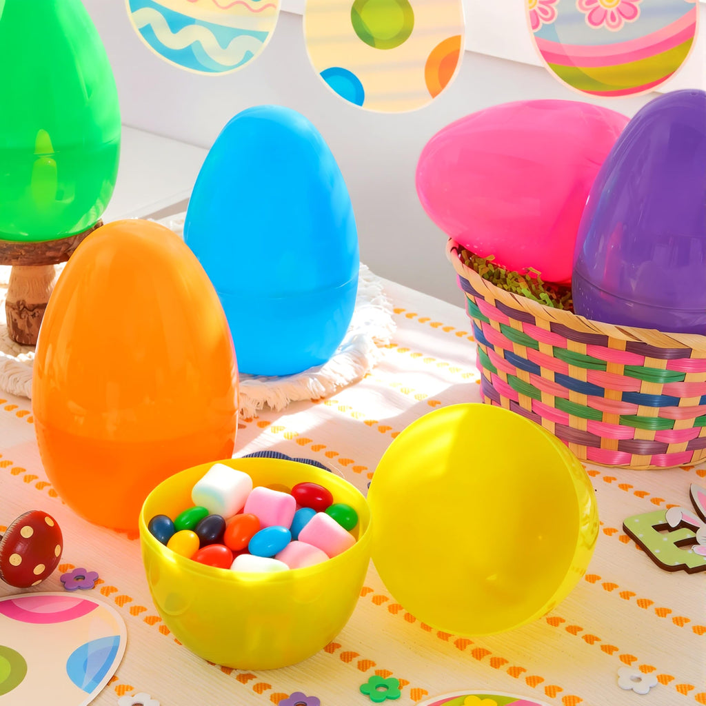 6Pcs 8" Jumbo Plastic Easter Egg Shells Fillable for Easter Egg Hunt