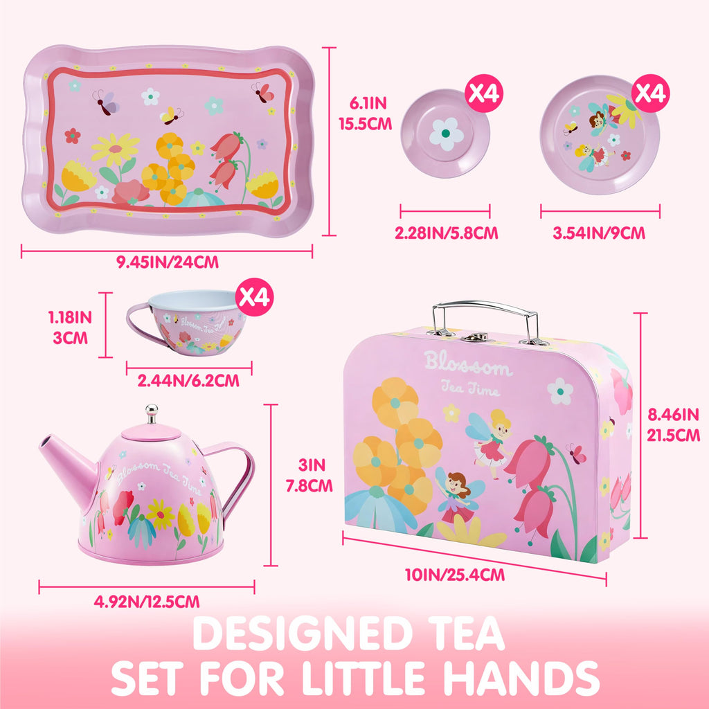 Fairy Blossom Tea Party Set for Girls 3-6 Teapot Set with Cups, Plates & Carrying Case - Leak-Proof Princess Tea Time Toy