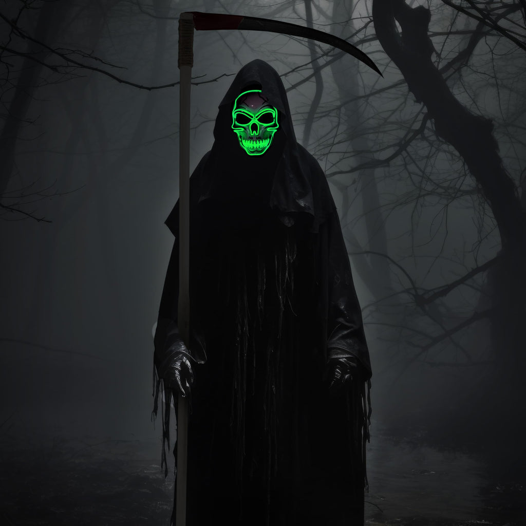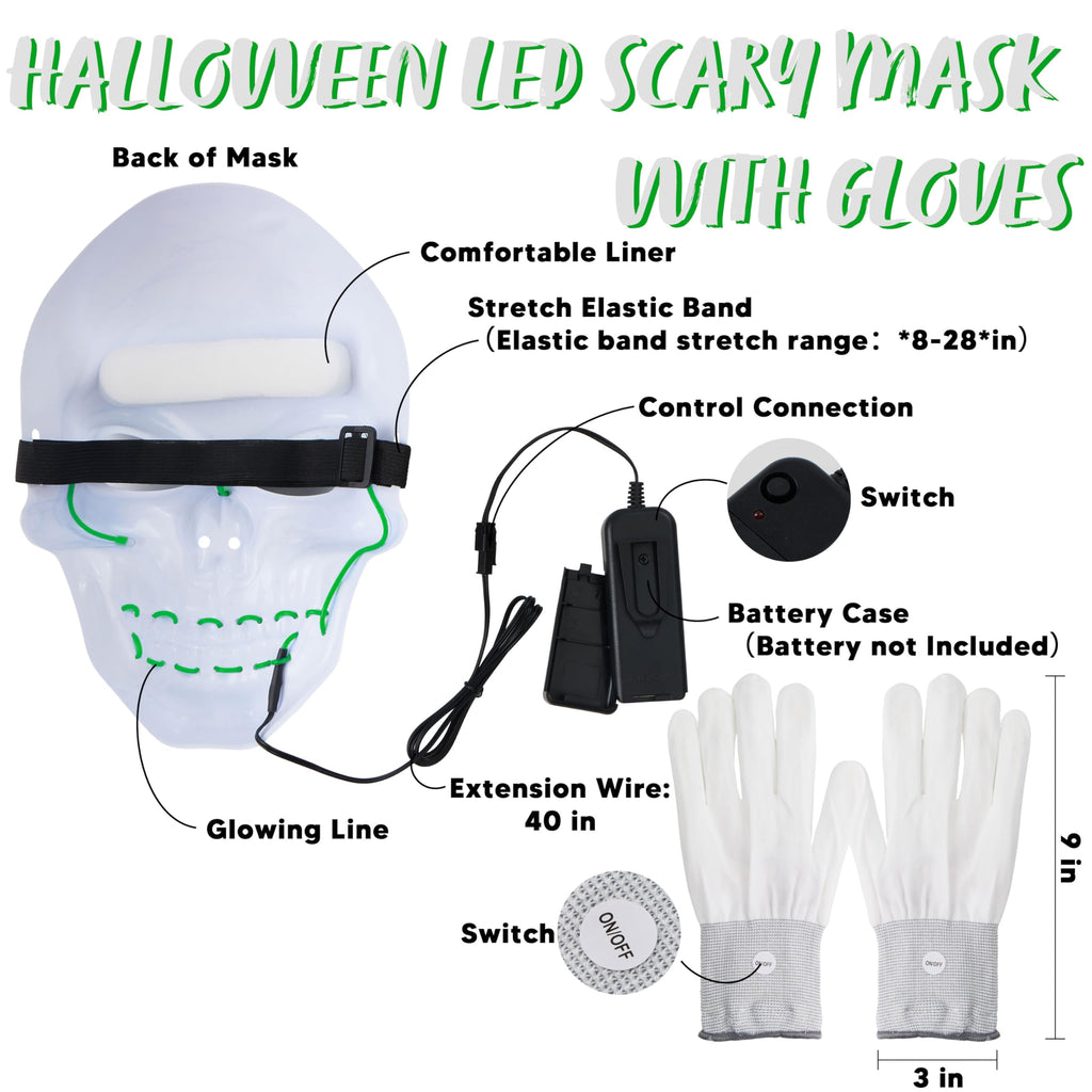 Halloween LED Skull Mask with Light Up Gloves, Green