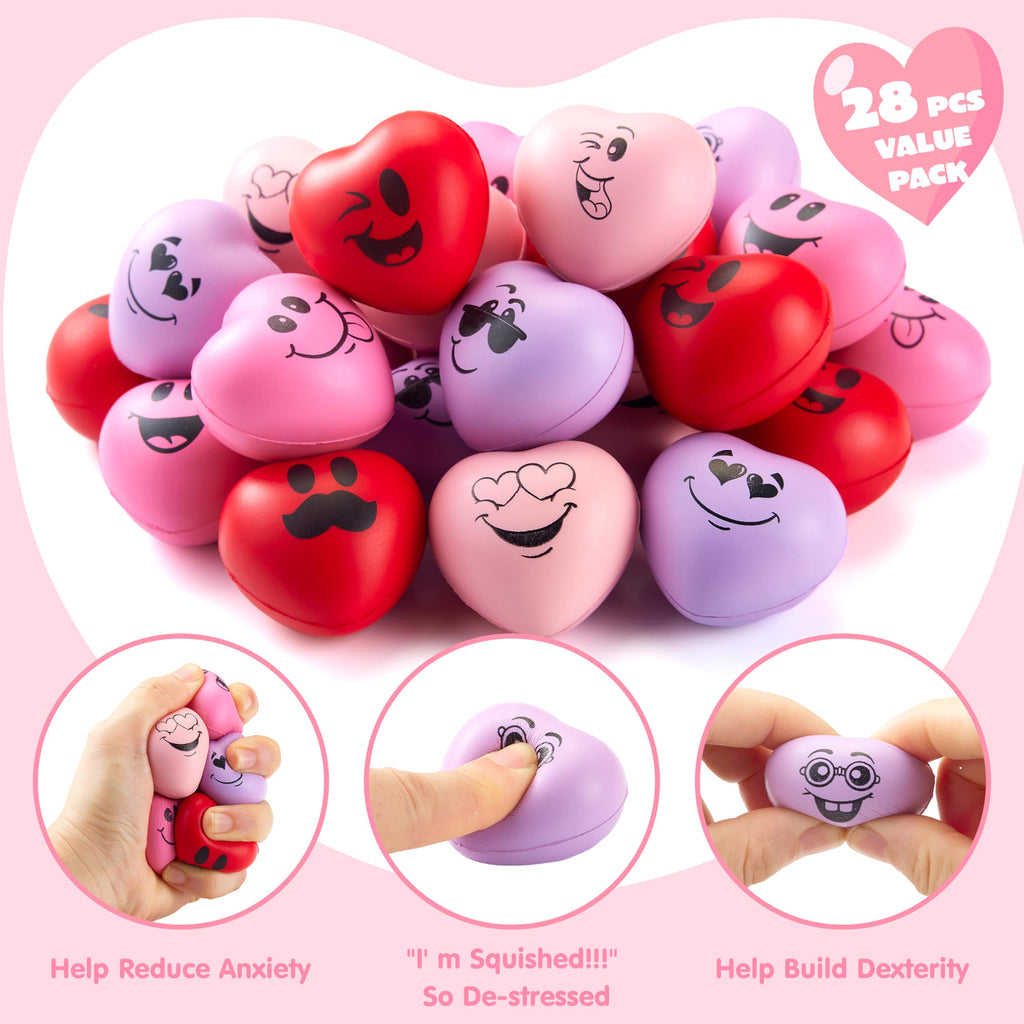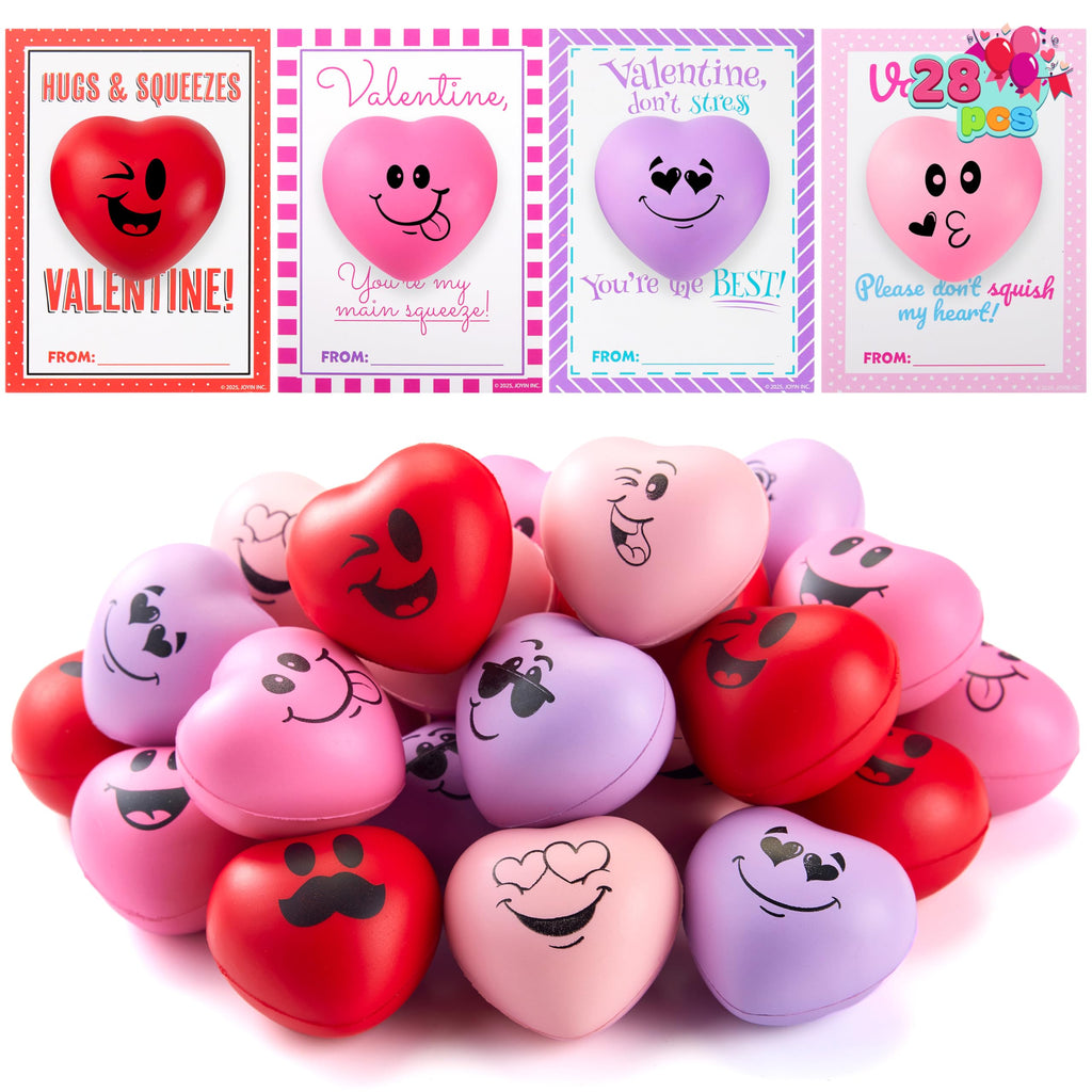 JOYIN 28 Pcs Valentine’s Day Heart Shape Stress Ball with Cards