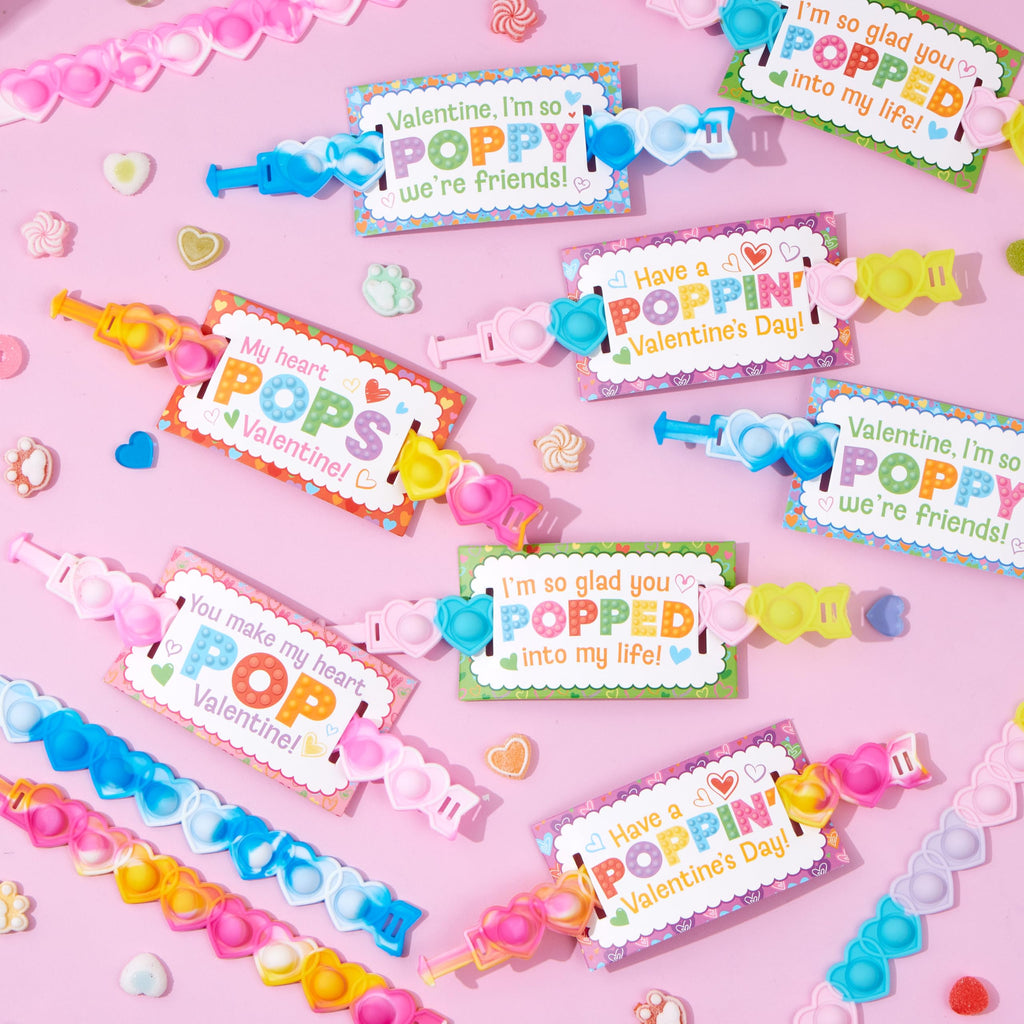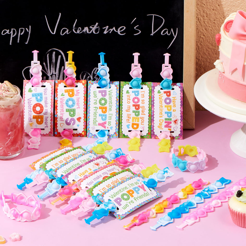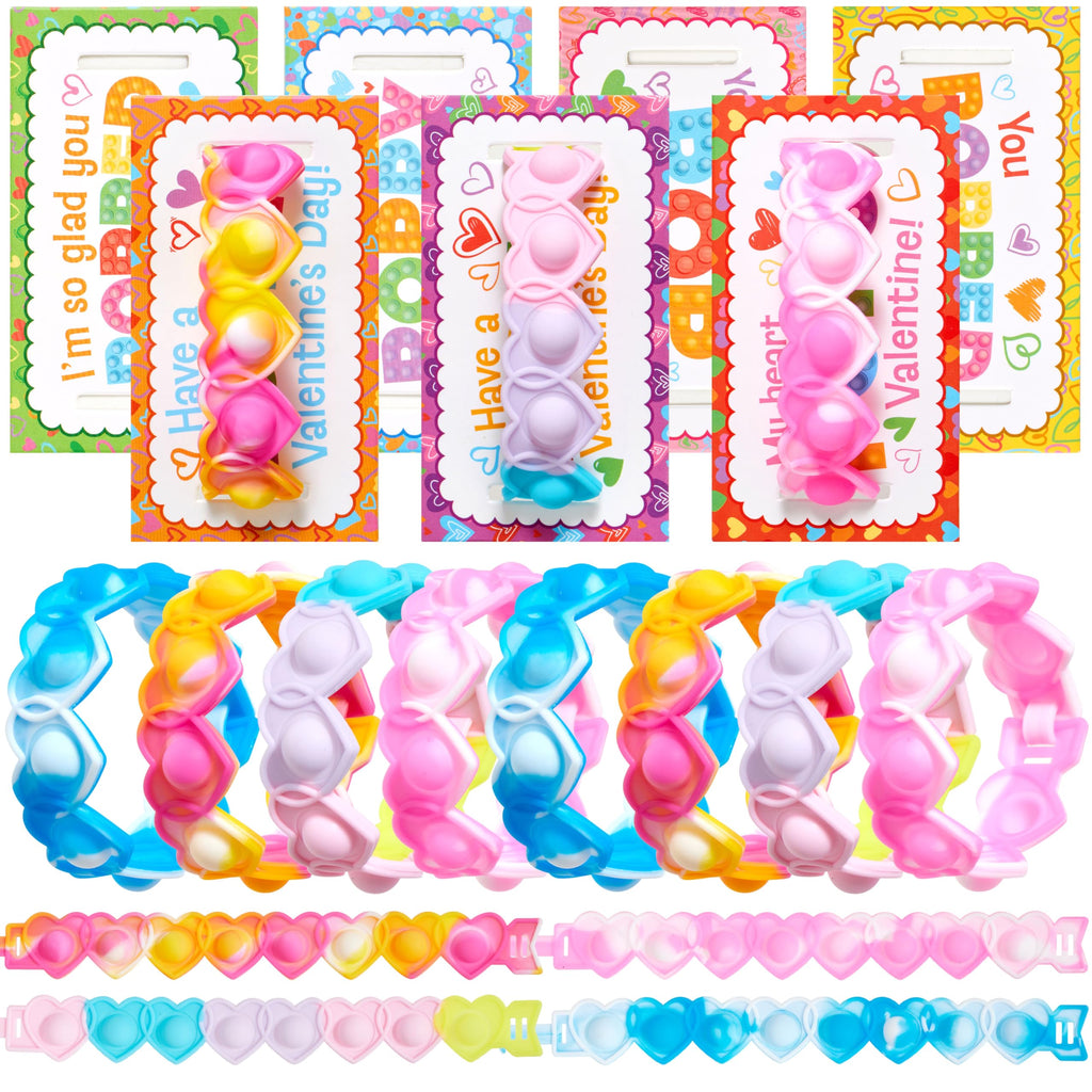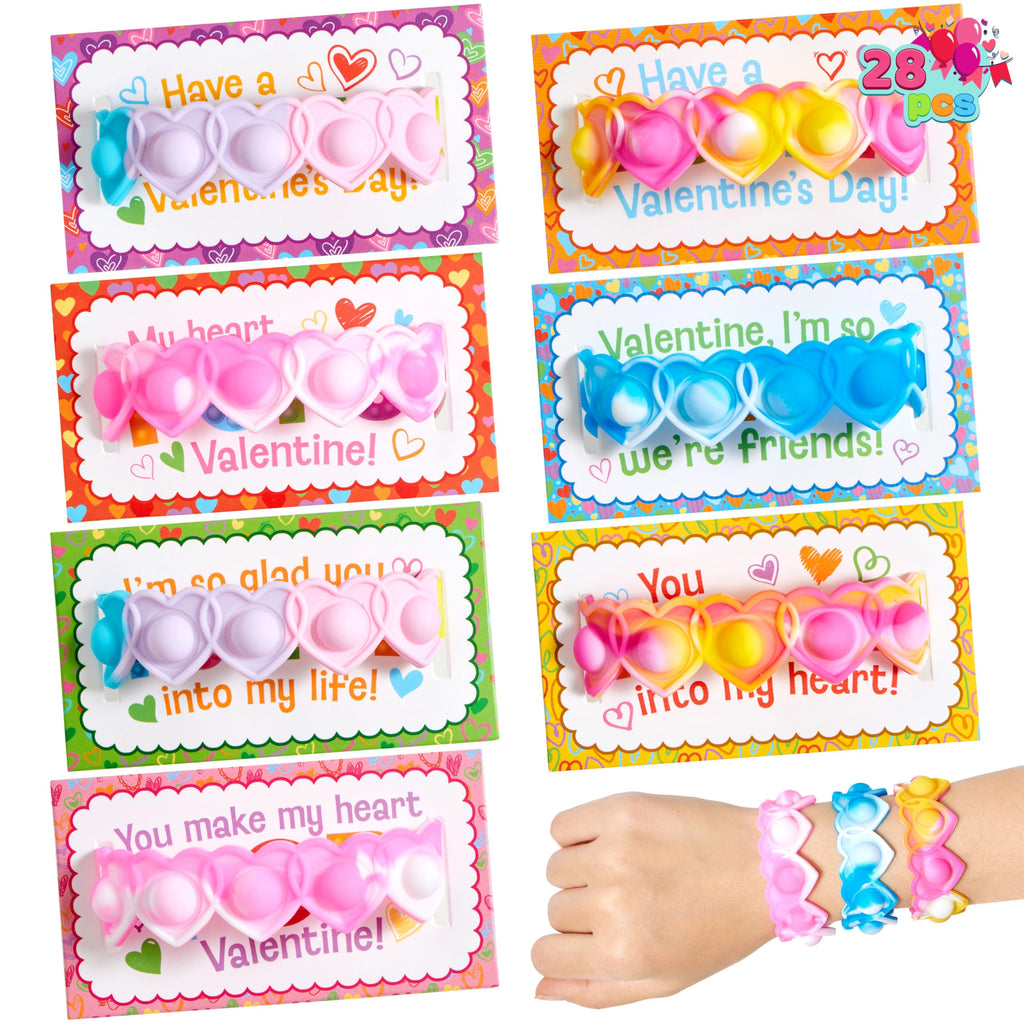 JOYIN 28 PCS Valentine's Day Stress Relief Pop Bubble Fidget Toys with Heart Pop Fidget Bracelets