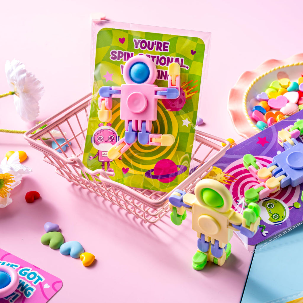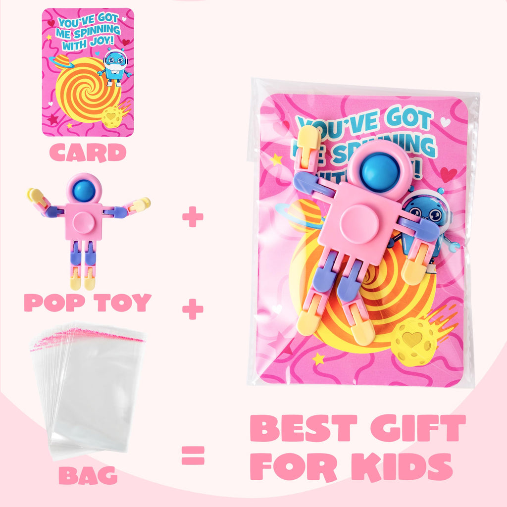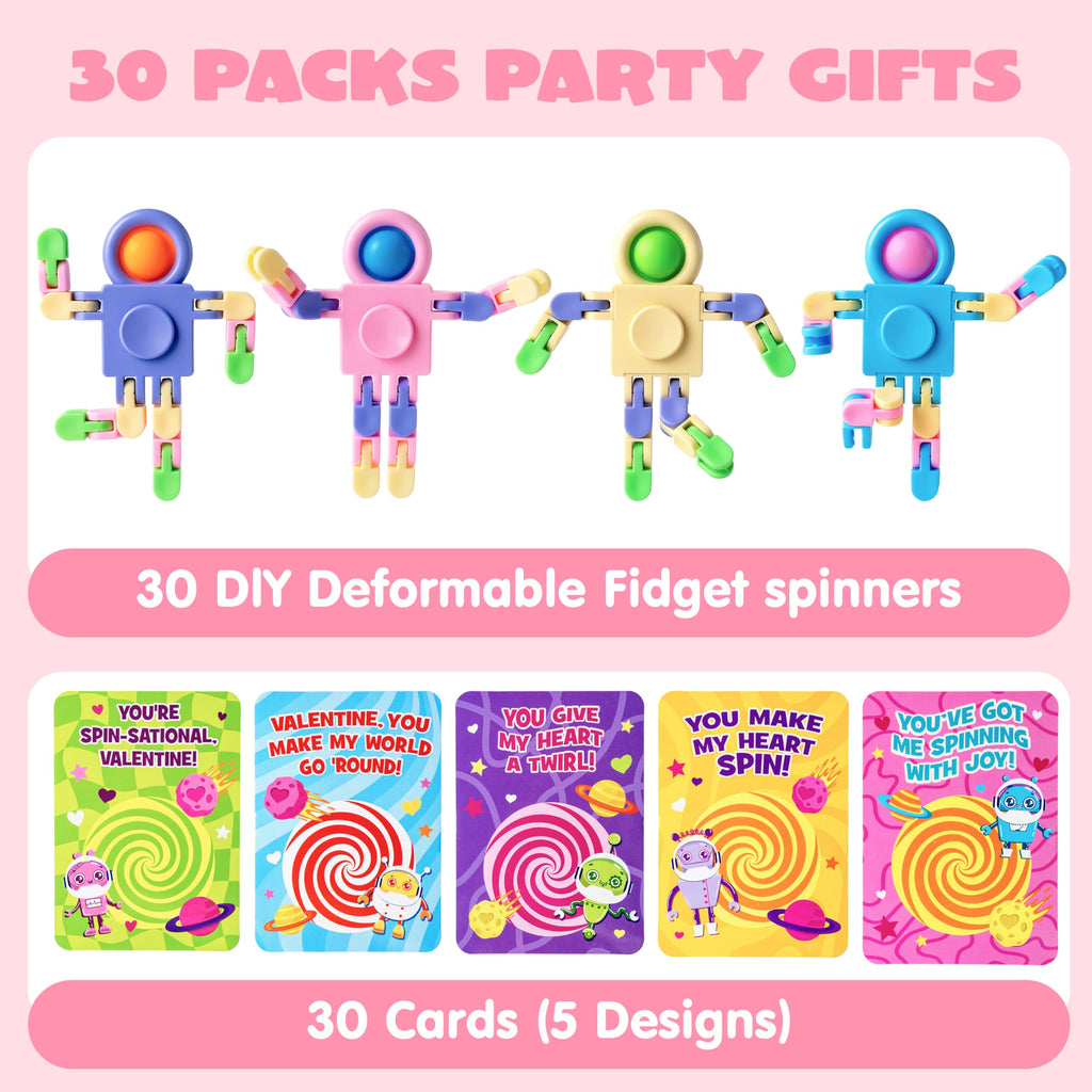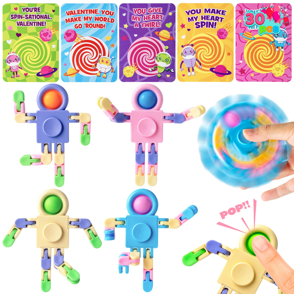 JOYIN 30 Packs Valentine's Day Pastel Robot Fidget Spinners with Cards