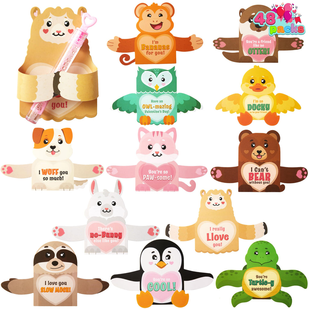 JOYIN 48 Pcs Valentine’s Greeting Cards Candy Holder Cards for Kids Holiday Reward Prizes