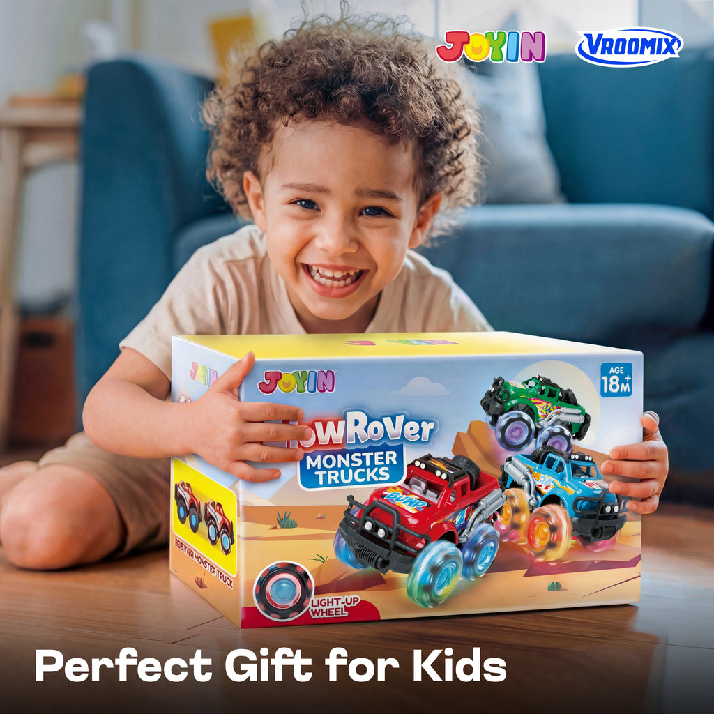JOYIN 3 Pack Monster Truck Toy - Toy Truck with Flashing LED Wheels