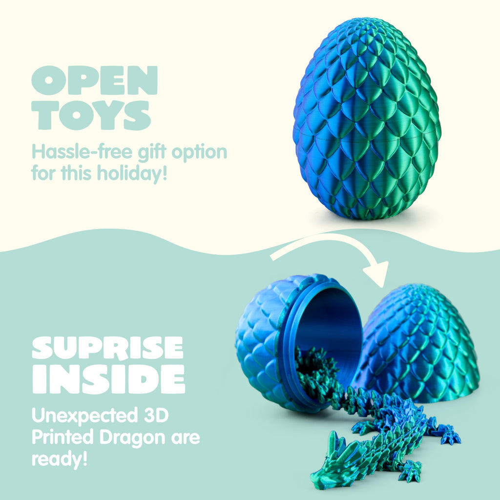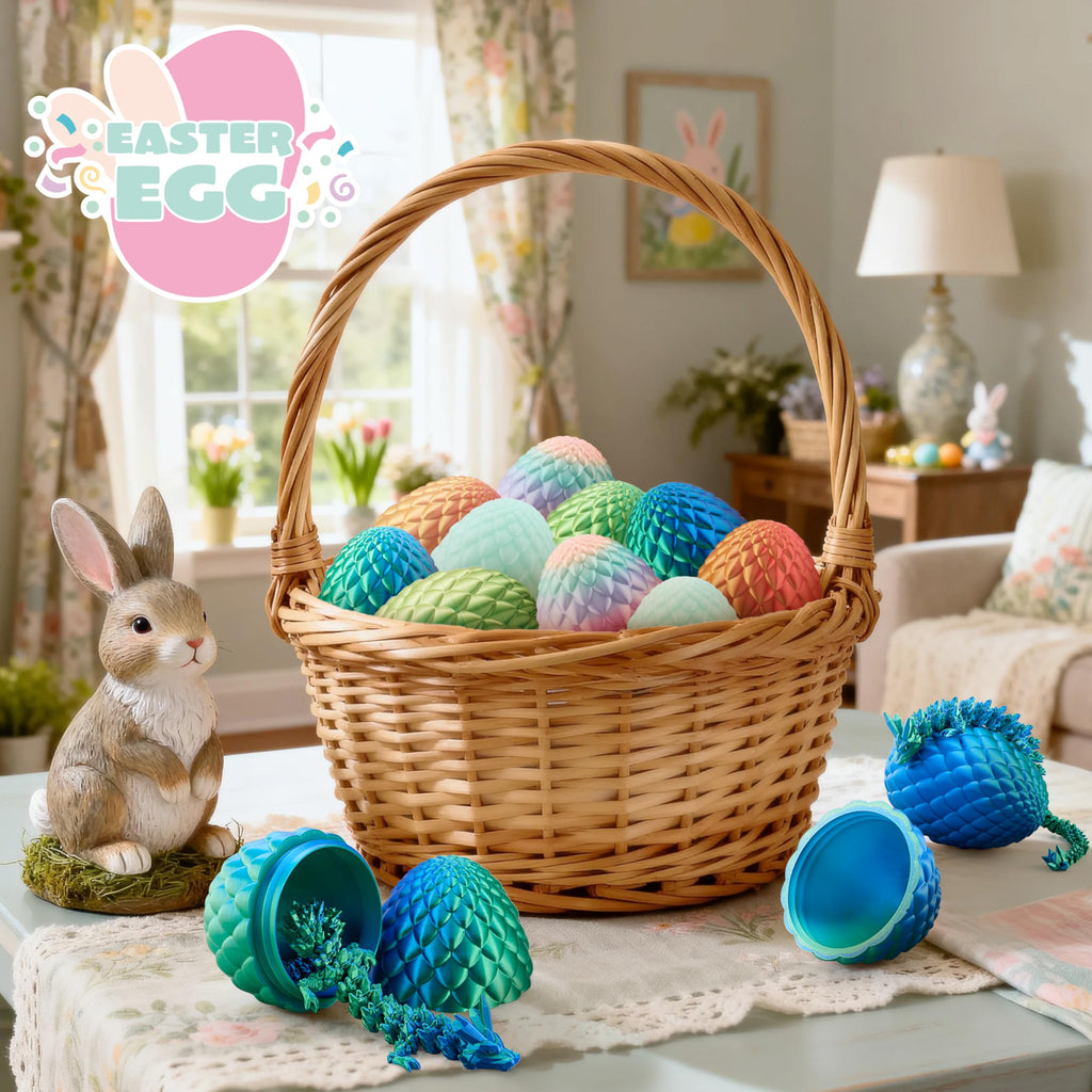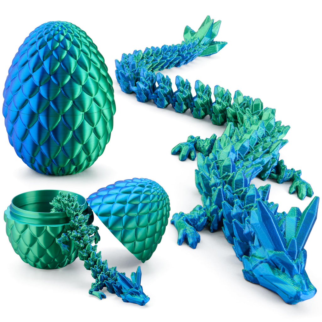 3D Printed Dragon Eggs with 12" Laser Blue-Green Dragon Inside