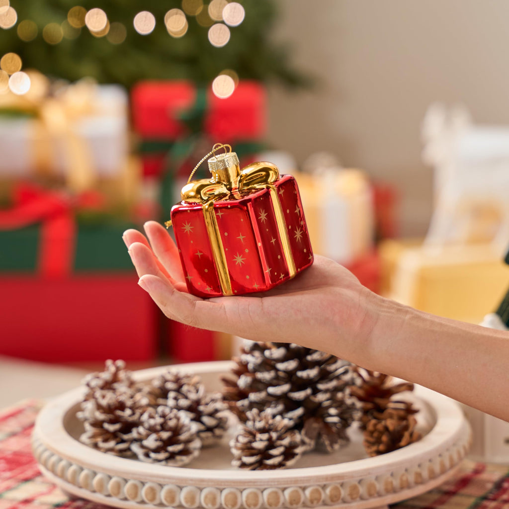 Christmas Small Gift Box Glass Ornament
