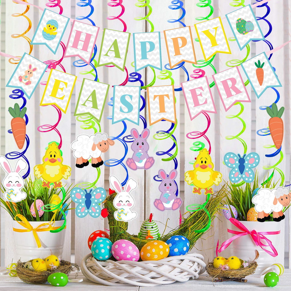31 Pcs Easter Foil Swirl Hanging Decorations for Party