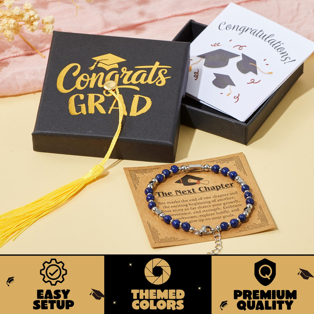 2026 Dark Blue Graduation Bracelet with Greeting Card and Gift Box for Women, Graduation Gifts
