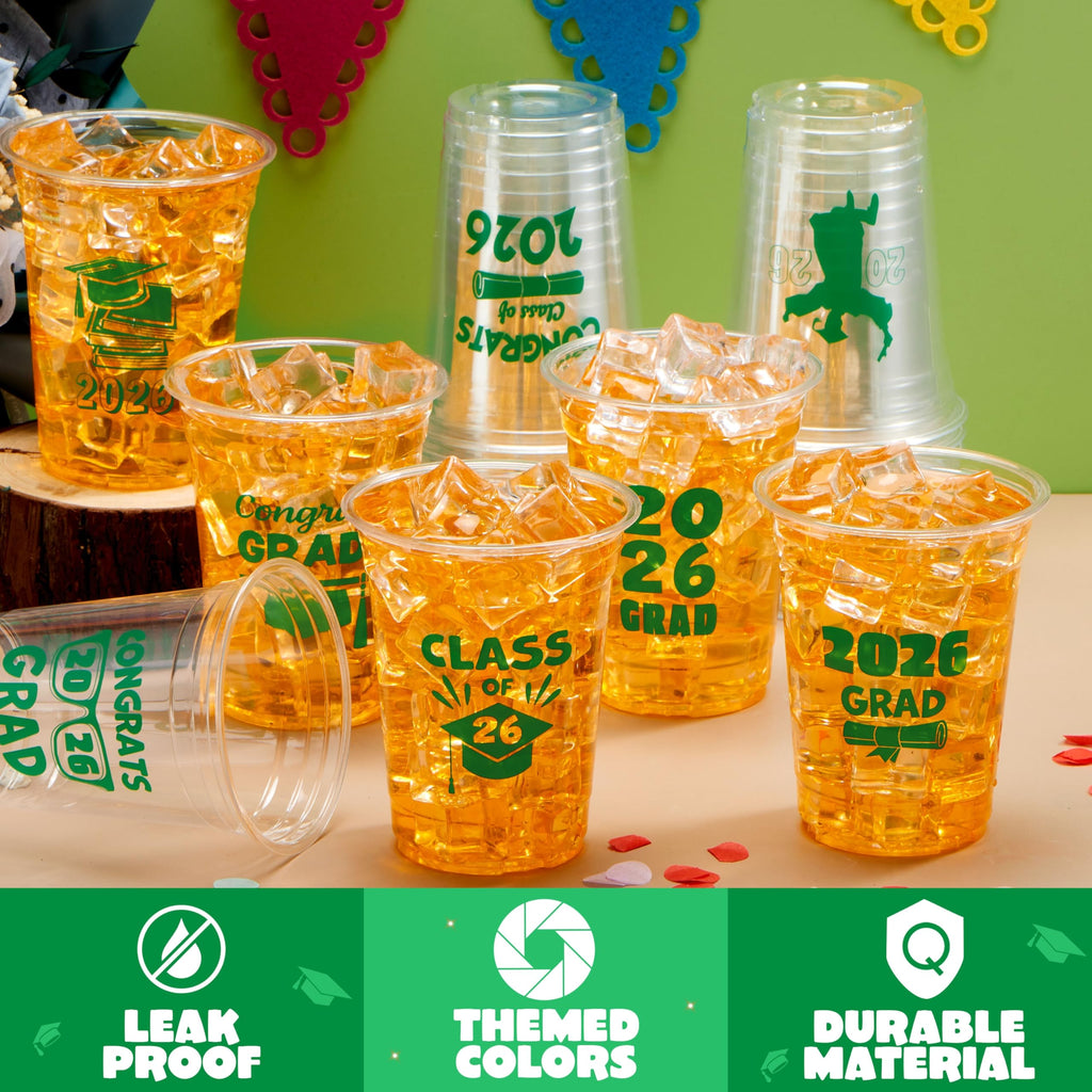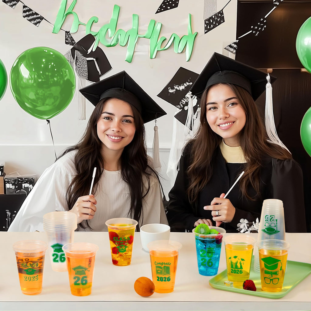 24Pcs 16oz Green Disposable Graduation Cups Class of 2026 Party Supplies