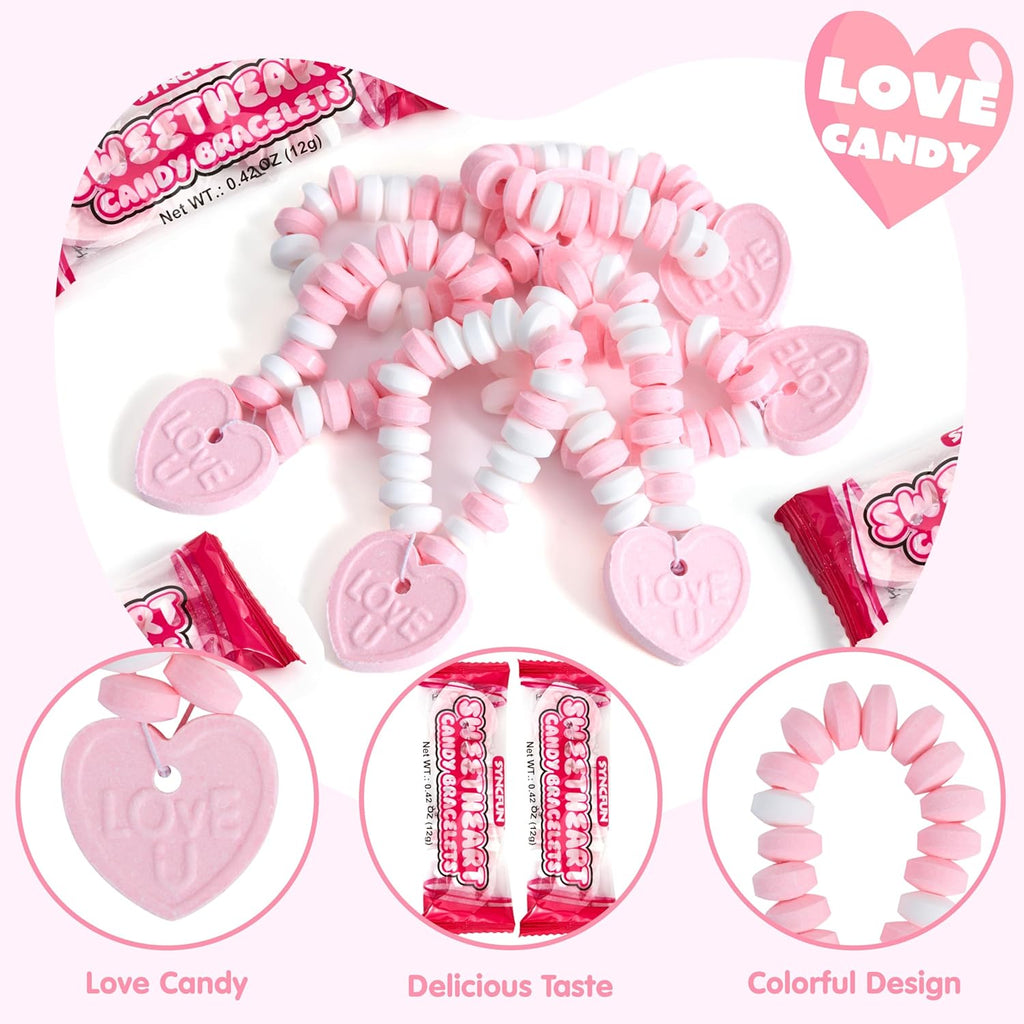 24PCS Valentines Day Candy Bracelets - Party Favor, Holiday Reward