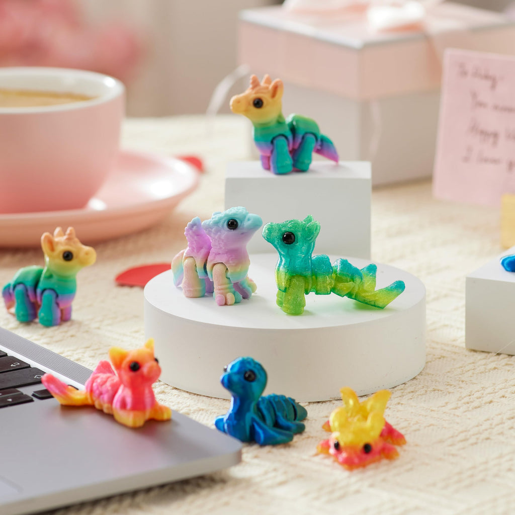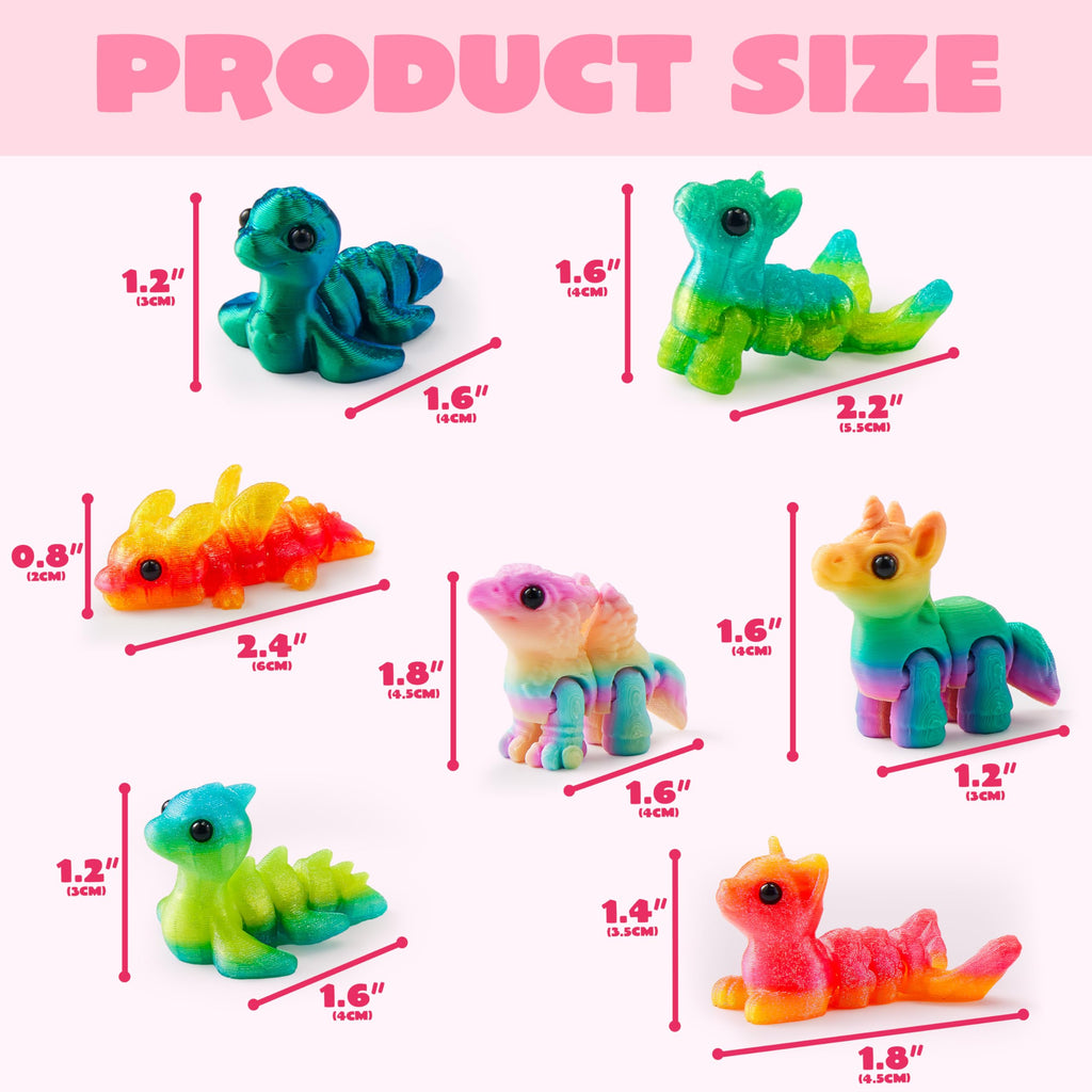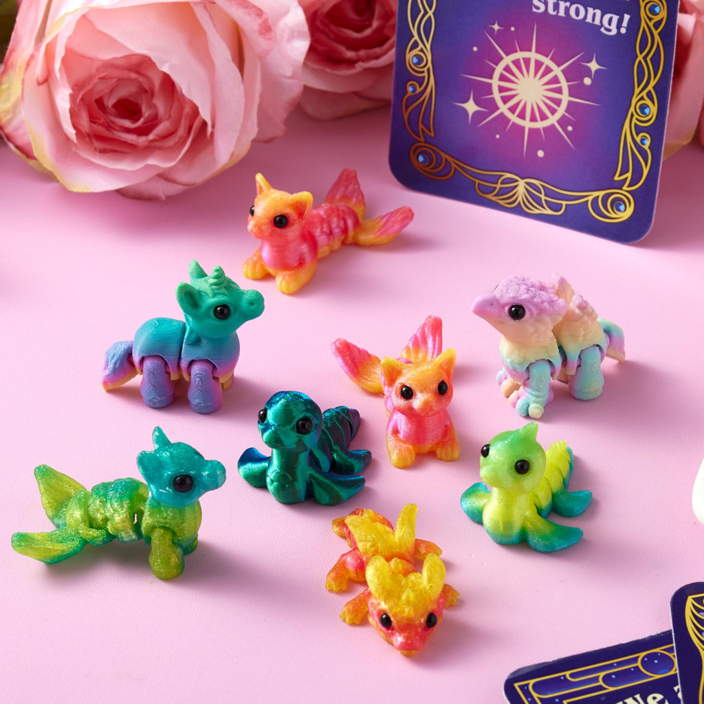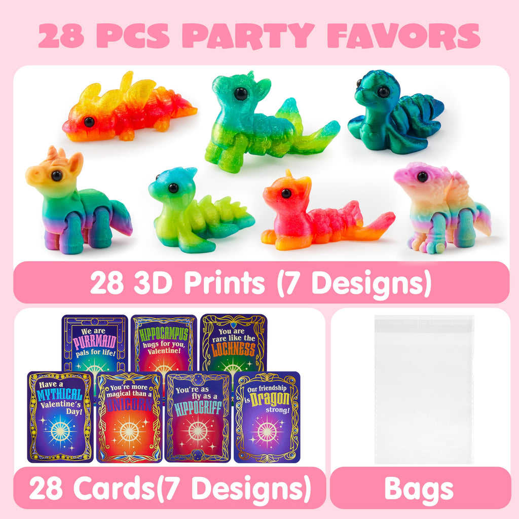 28 Pcs Kids Valentines Day Cards with 3D Printed Mythical Creatures Toys