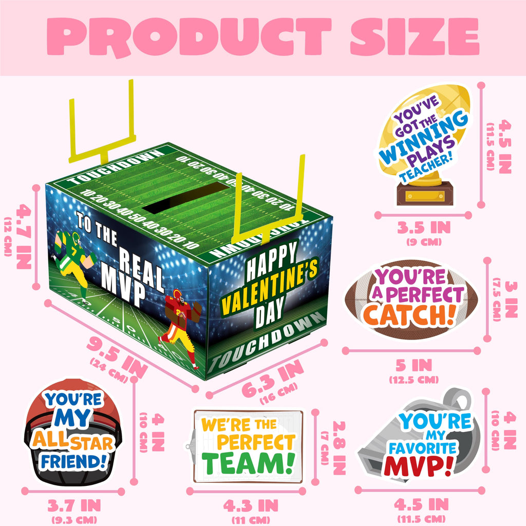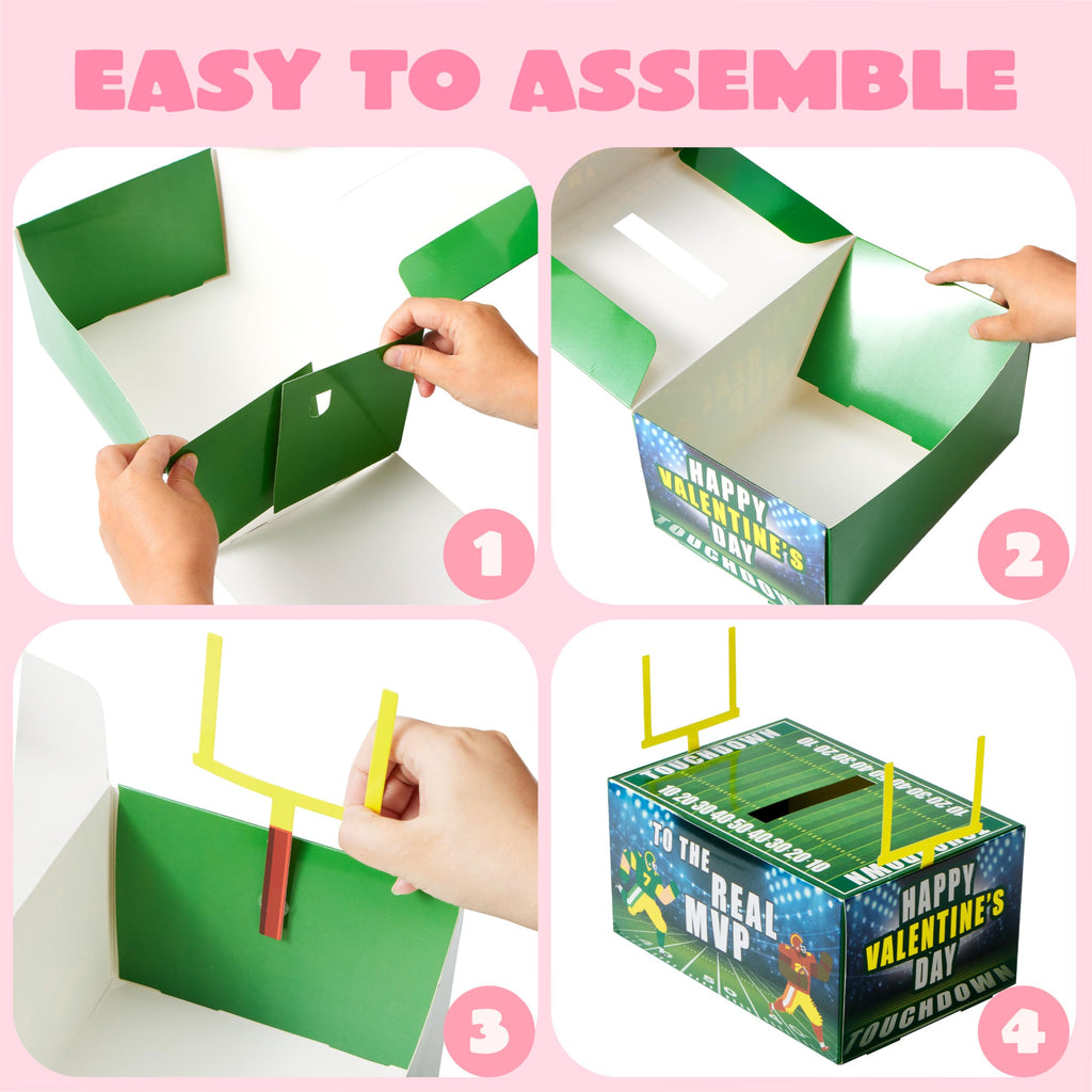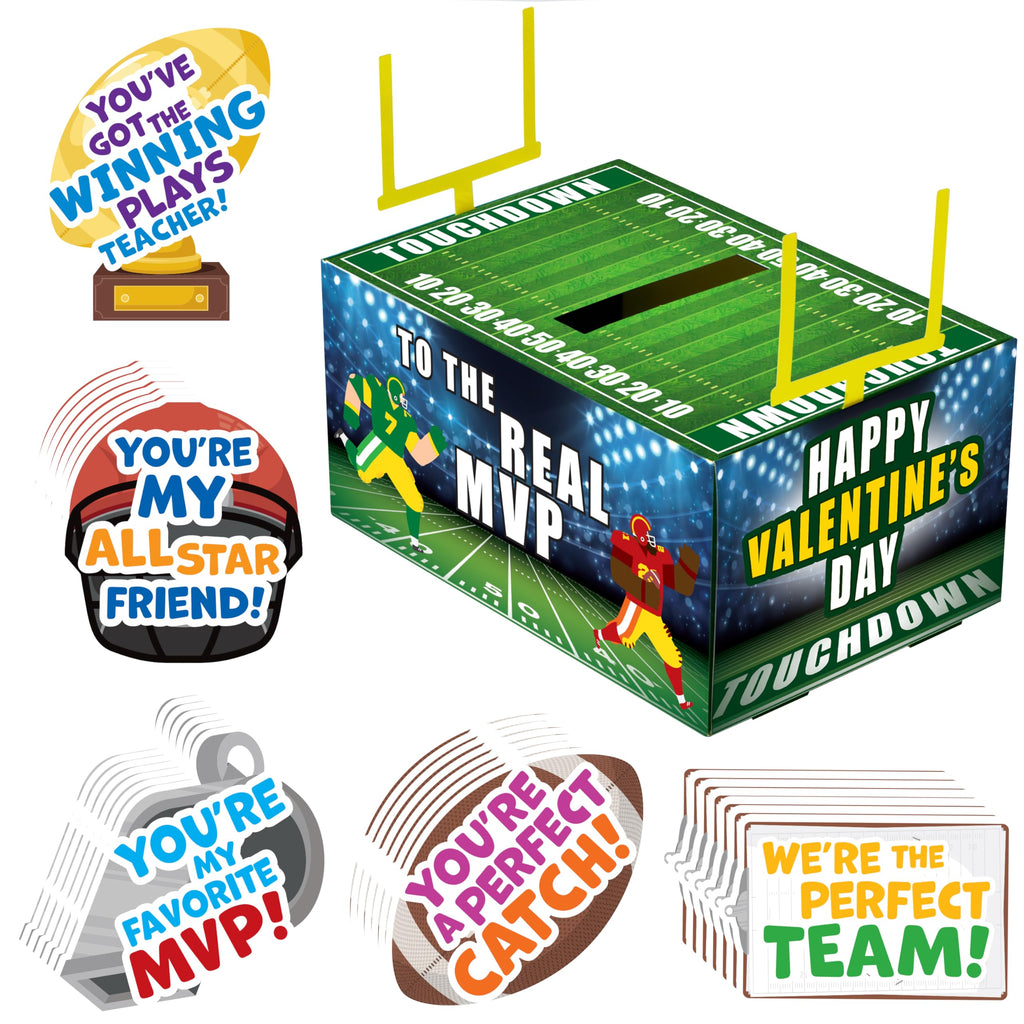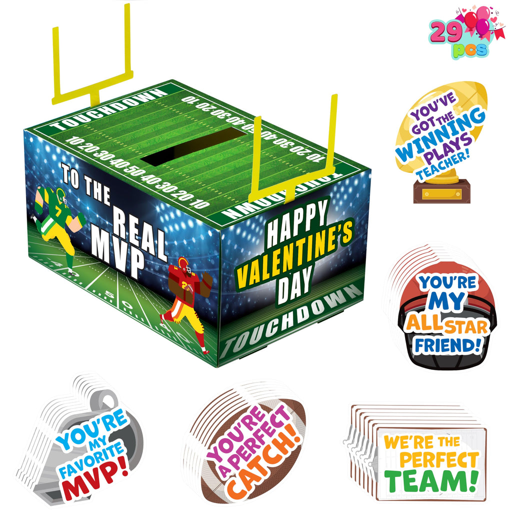 Valentine Boxes Football Classroom Mailbox with Cards for Kids - 4 Designs, 29 Pcs