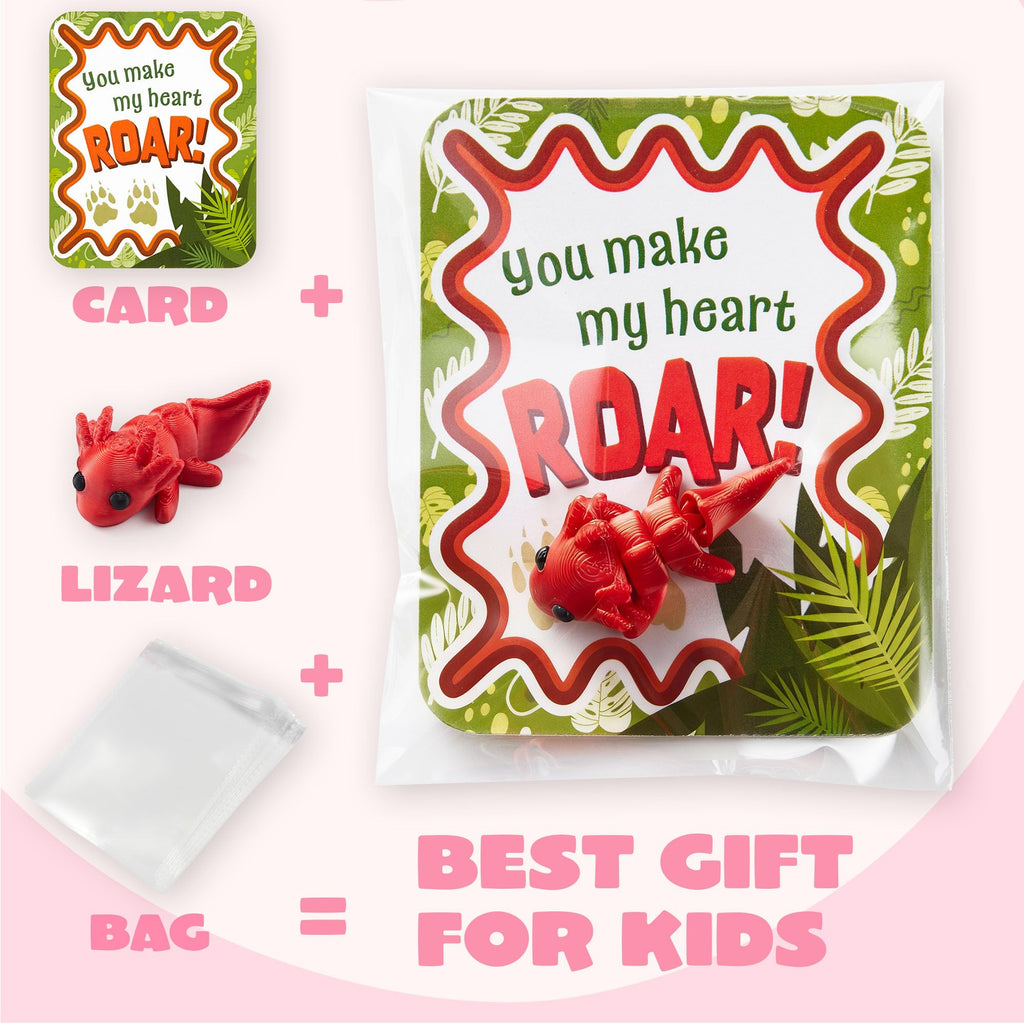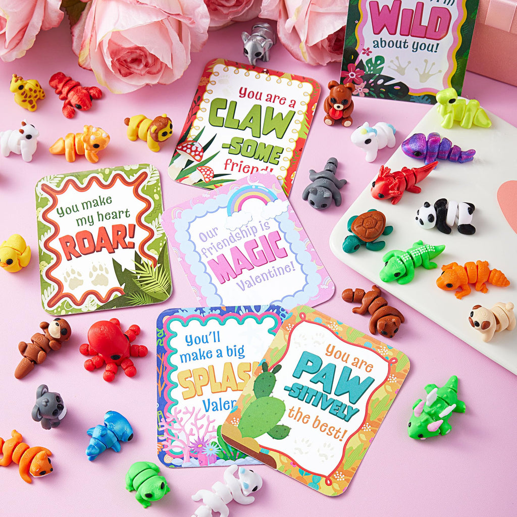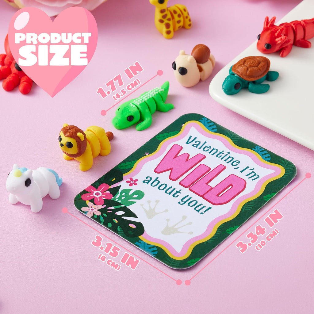 28 Pcs 3D Printed Mini Animals with Valentine Greeting Cards for Kids