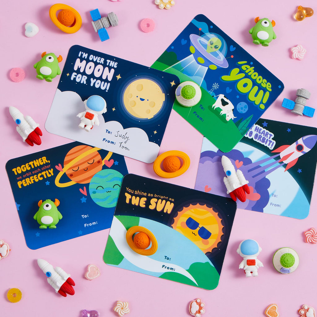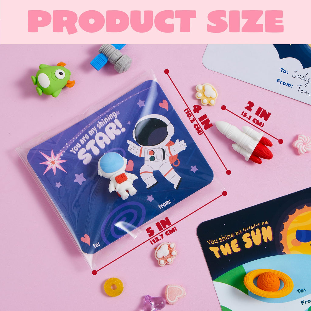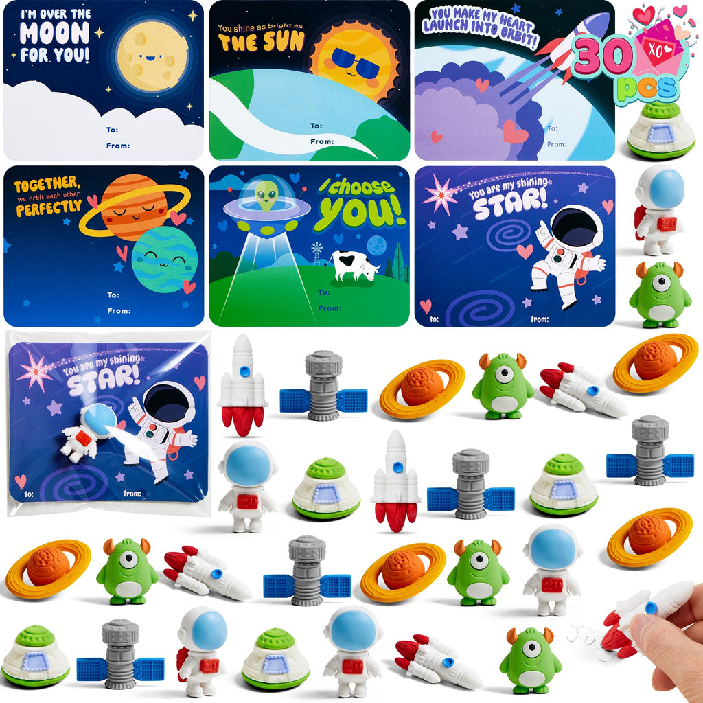 30 PCS Valentines Cards with Space Theme Erasers for Party Favor Gifts