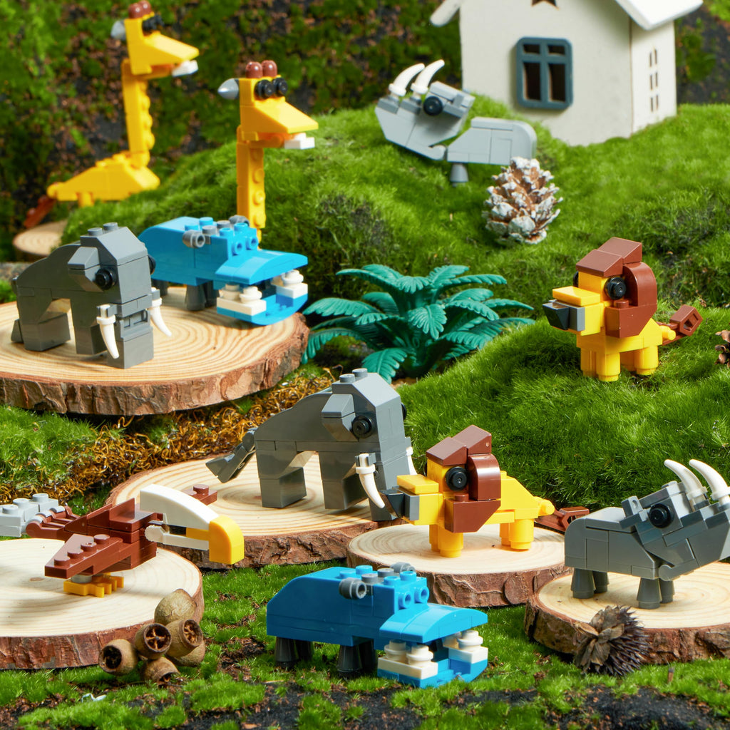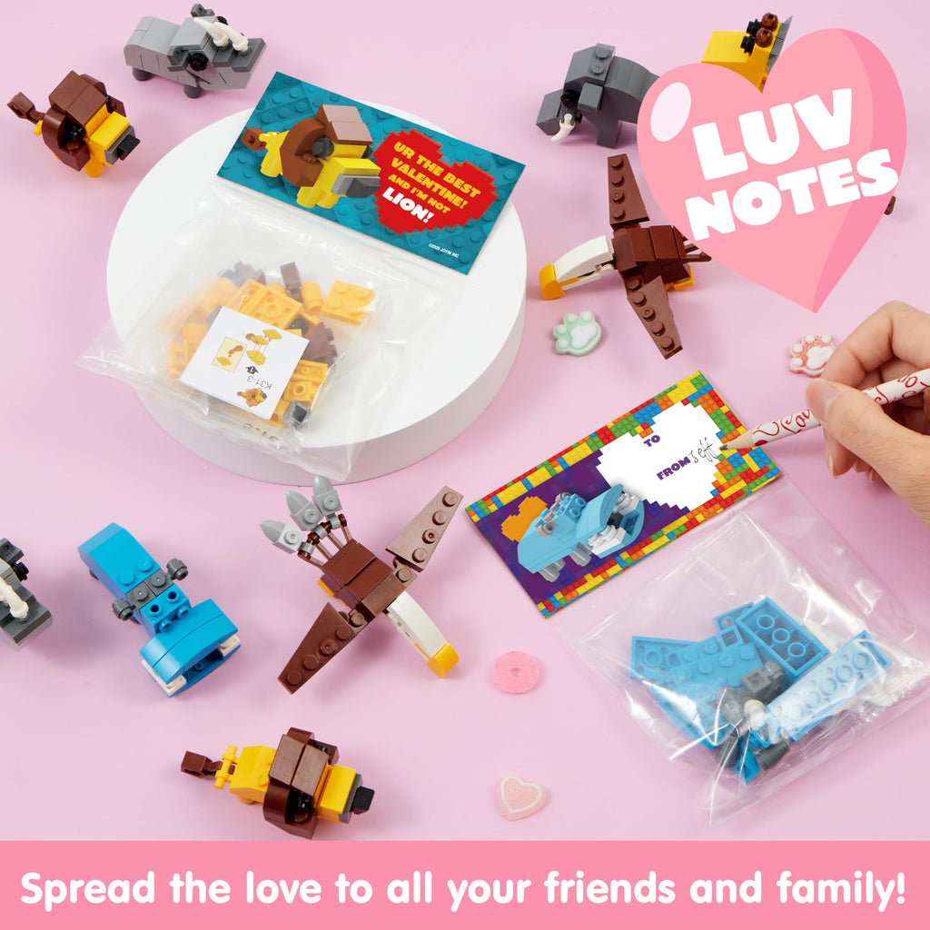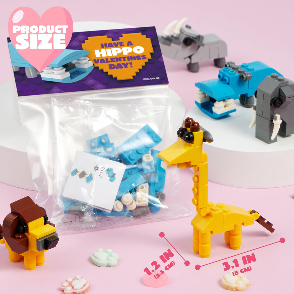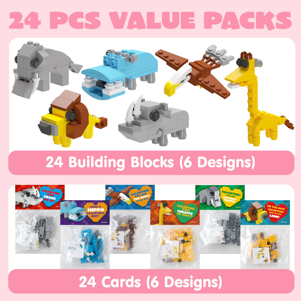 24 Packs Valentines Day Cards with Safari Animal Building Blocks for Gifts Party Favor