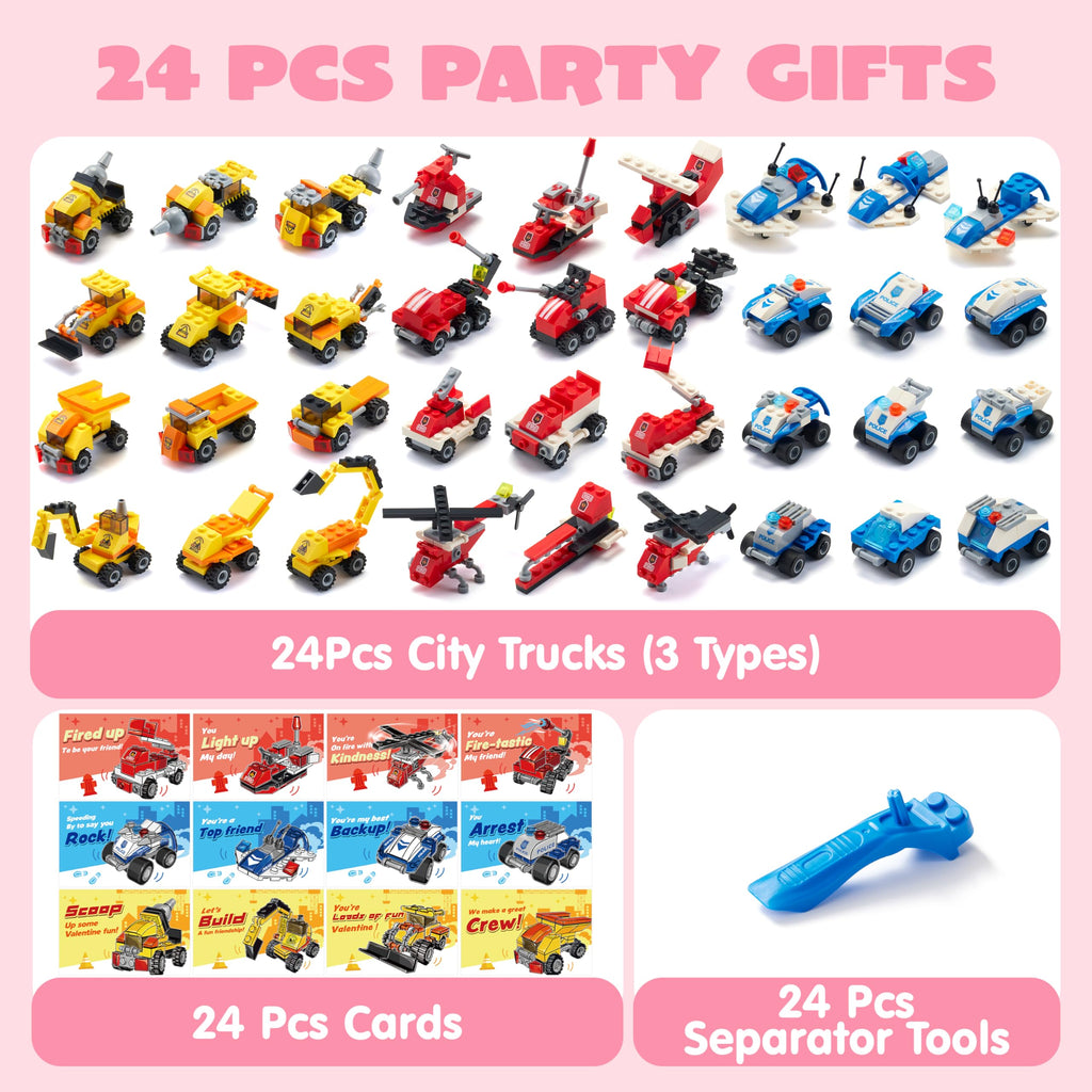 JOYIN 24 Pcs Valentine's Day Mini Truck Building Blocks with Cards