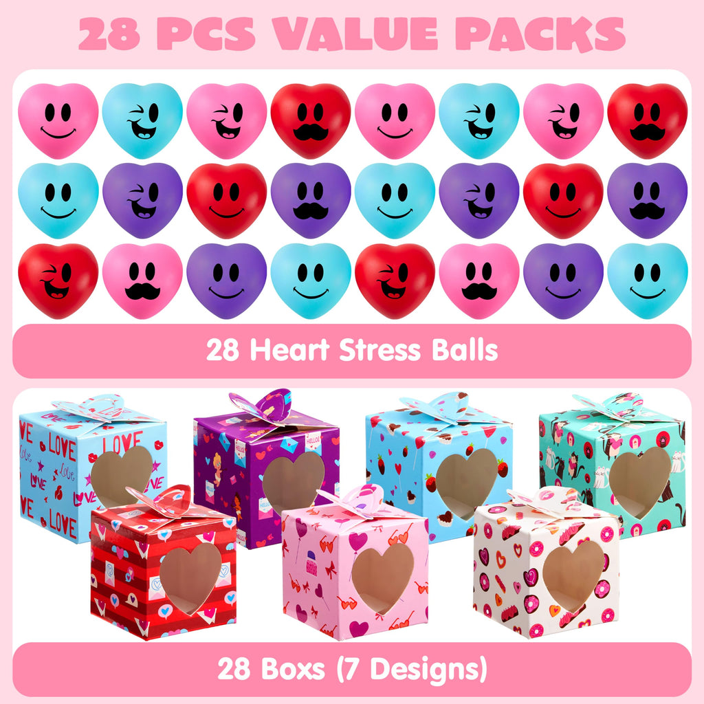 JOYIN 28 Pcs Valentine Heart Stress Balls with Boxes