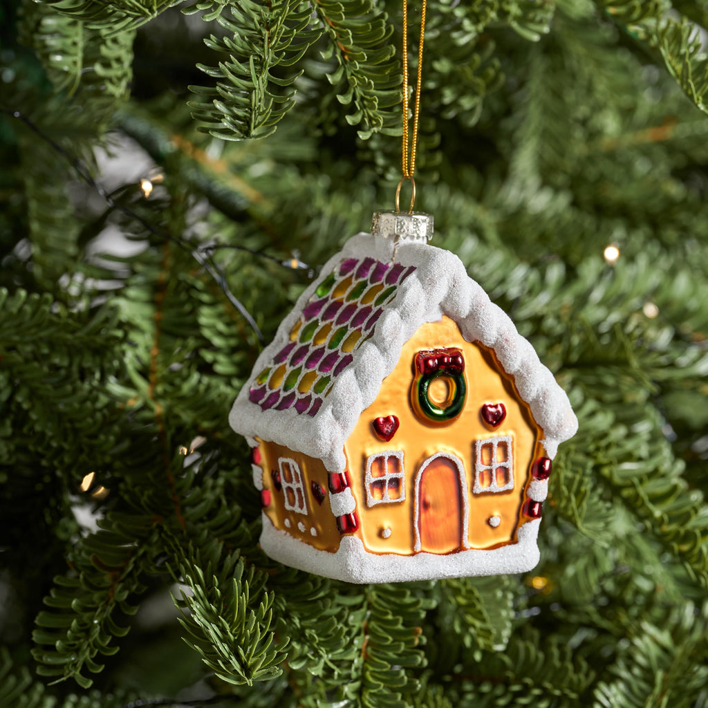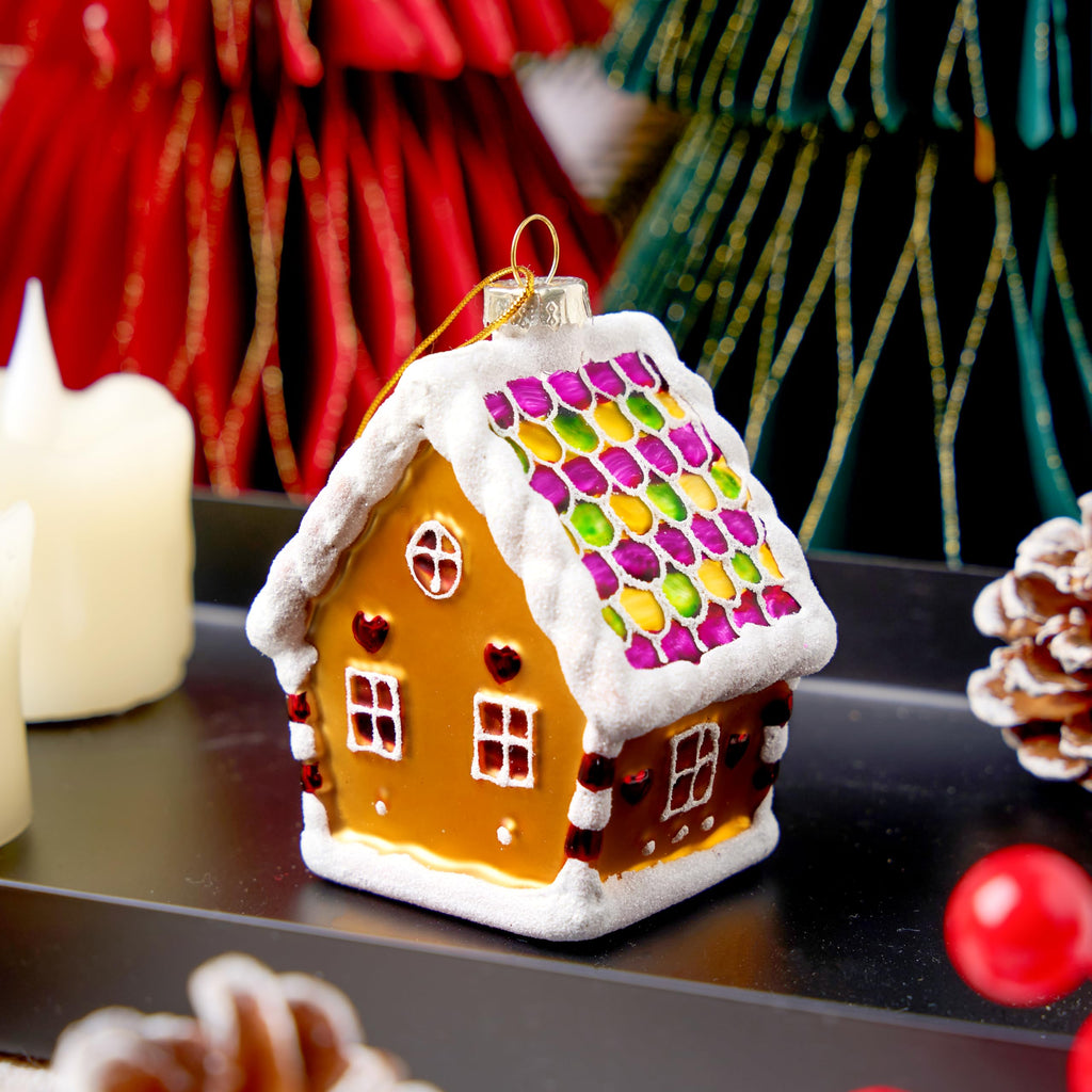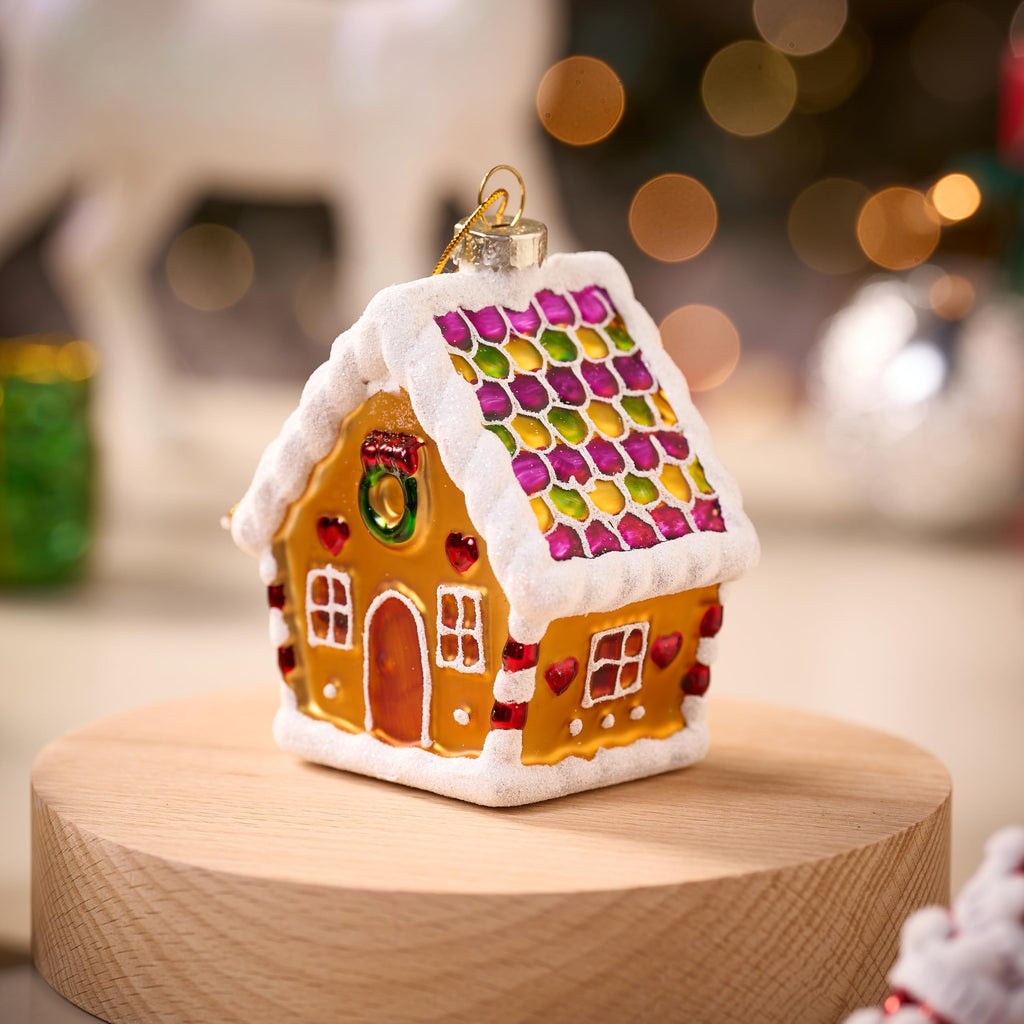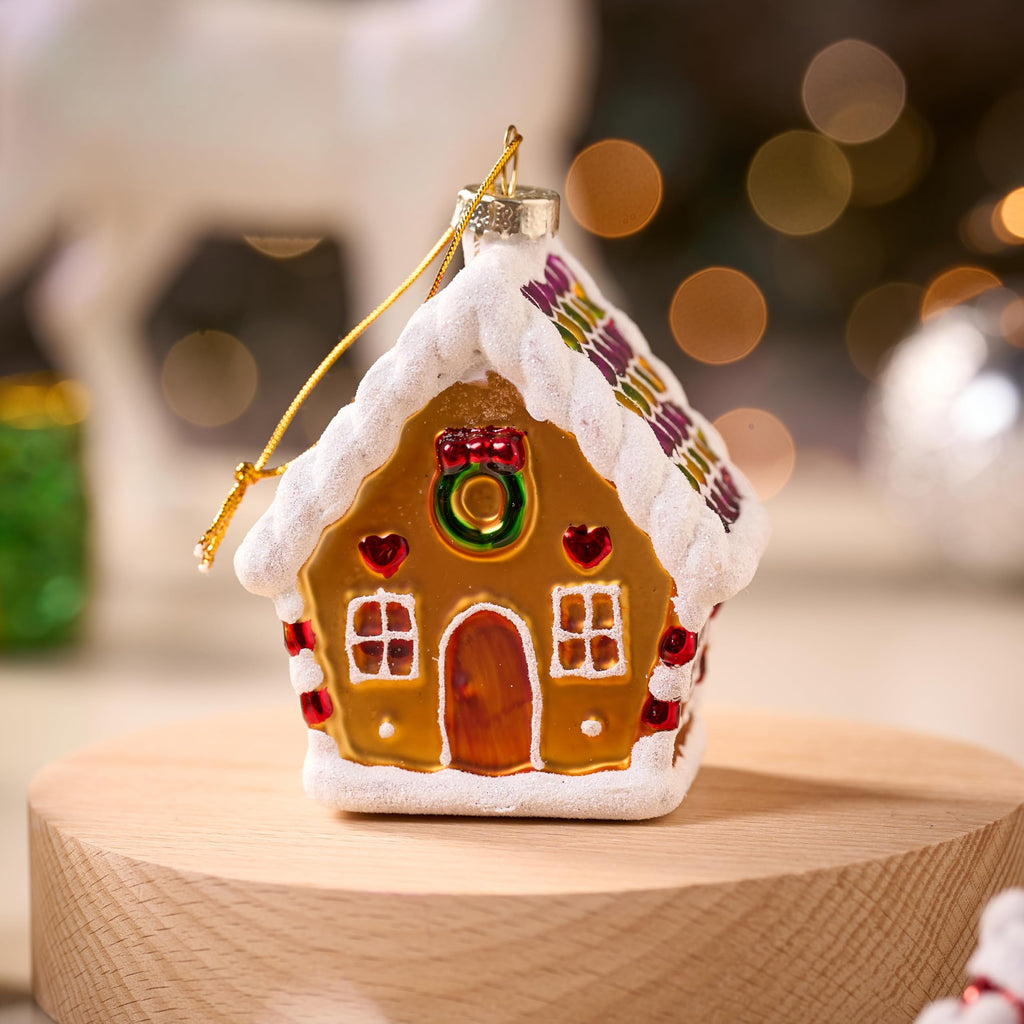 Mini Christmas Gingerbread Cottage Glass Ornament
